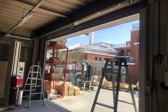 業務用の倉庫内や工場内にて小型の出入り口の間仕切りに高機能・高性能な電動式シートシャッター。