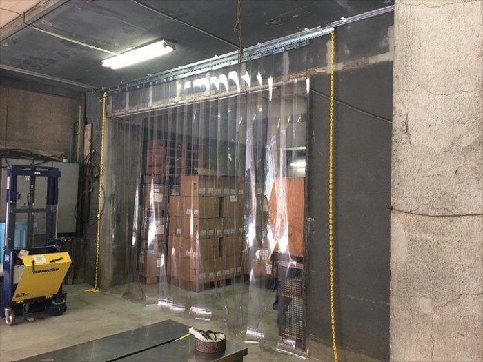 工場・倉庫・店舗などの屋外との出入口にはビニールカーテンが最適です。対応可能なサイズは高さ6m、横幅は数十メートルまで対応可能。屋外ですので風などの防風仕様のカーテンなどオプションも充実しております。カーテンレールなどは主に既存の出入口部分にあるサッシ、鉄骨下地などに固定致しますが下地がない場合でも当社にて下地工事まで一貫して承っております。カーテン素材は透明ビニールから色付きのテント生地を使った素材まで幅広く取り揃えております。