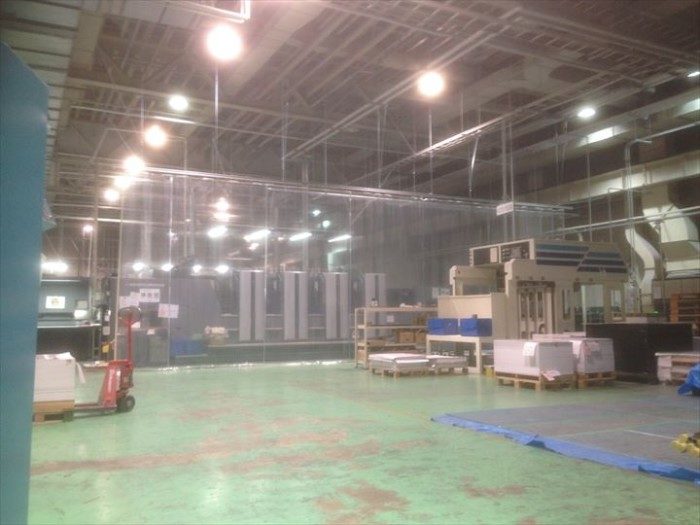 屋内用の間仕切りシートなどは工場や倉庫内のスペースを間仕切る際に最適な製品です。ローコスト、短納期にて設置が可能なビニール間仕切りは、建物の形状や大きさに合わせてフルオーダーメイドで製作致しますので、あらゆる環境に適した製品でございます。 工場や倉庫などの間仕切りは空調温度の効率化にも最適ですので年間のエネルギーコスト削減にも大きく寄与いたします。事務所や店舗などでも同様に間仕切りシートはあらゆる場面に人気の高い製品でございます。