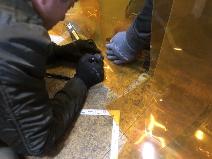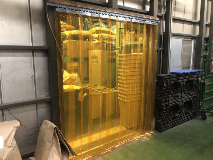 今回、全4ヵ所にのれんカーテンの取付工事を行いました。防炎が必要な場所と必要でない場所がございましたので、今回防炎・非防炎の2種類を2箇所ずつ設置いたしました。工事後、お客様には喜んでいただき、大変満足の行く取付工事となりました。