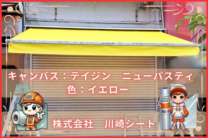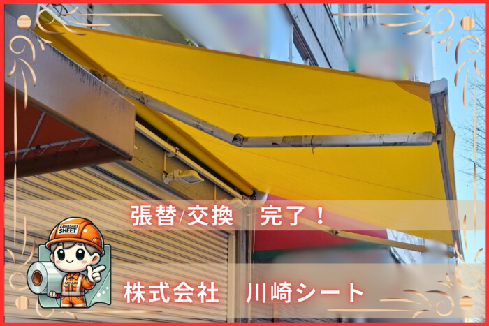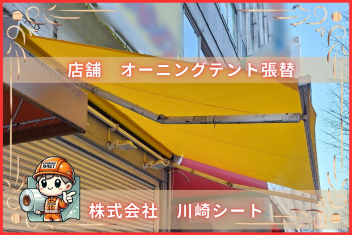 この度は東京都の某所にて店舗用のオーニングテント張替を行わせて頂きました。本体メーカーはマルキルックス製ですが本体の調子も問題なく無事に張替が完了いたしました。