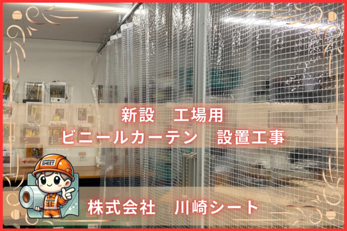 この度は東京都の工場内にてビニールカーテンの設置工事を行わせて頂きました。主な目的としては虫や害虫などの侵入対策や同時に空調などの効率化も兼ねて設置致しました。
