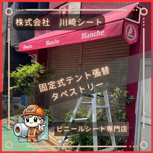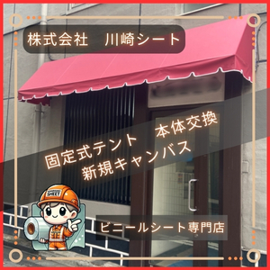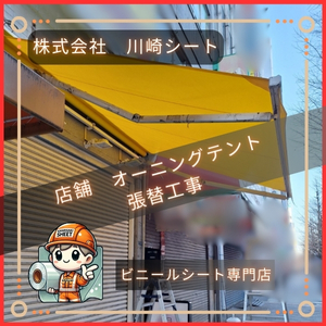 この度は店舗様からテントキャンバスの損傷による新規テントキャンバスの張替を御依頼いただきました。既存フレームの損傷は無くテントキャンバスのみ損傷でしたので大事には至っておらず新・・・