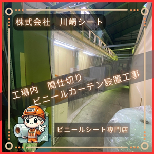 この度は店舗・工場内にビニールカーテンの設置工事を行わせていただきました。設置場所が表との出入口に当たるシャッター部付近で風対策や空調効果など環境を考慮した趣旨となっております・・・