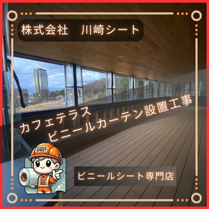 この度は愛犬と楽しめるカフェテラスにビニールカーテンの設置を行わせて頂きました。とても素敵な空間に仕上がり愛犬と一緒に楽しむ姿に期待です。 ビニールカーテン仕様情報 メ・・・