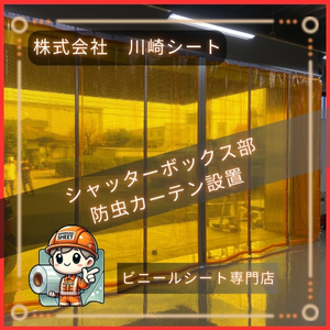 埼玉県の某所にてシャッター部の出入口に間仕切りビニールカーテンの設置工事を行わせて頂きました。ビニールシートの材質は防炎効果と防虫効果がある透明の糸入りシートを使用。メイン部材・・・