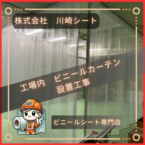 この度は東京都の某所にて工場内のビニールカーテン設置工事を行わせて頂きました。L字構造の間仕切り仕様でアルミレールなどを設置しビニールカーテンの取付を行いました。ビニールシート・・・