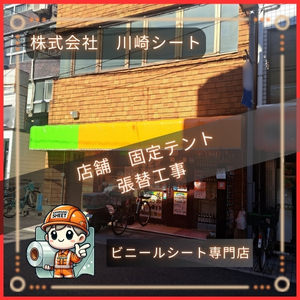この度は東京都の某所にて店舗用の固定テント張替を行わせて頂きました。本体フレーム構造がアーチ形部分のあるテントフレーム構造になっている仕様です。新規キャンバスはテイジン製のテト・・・