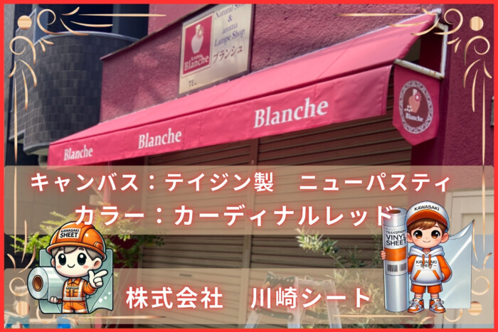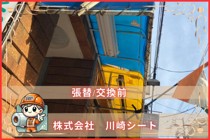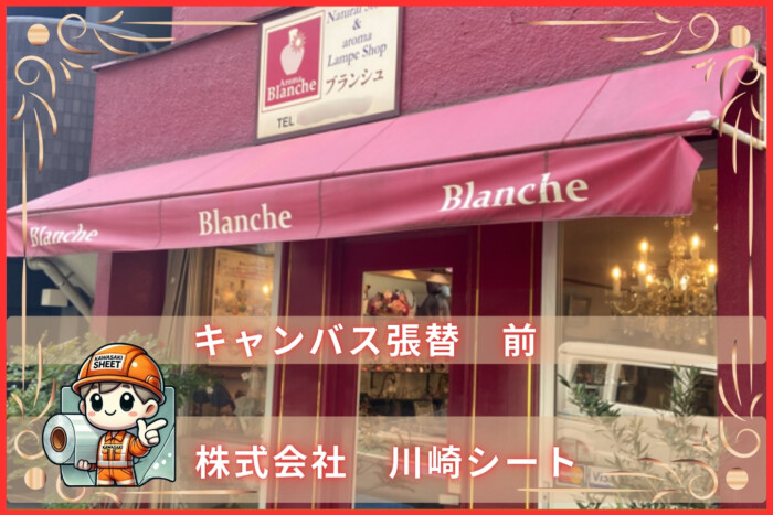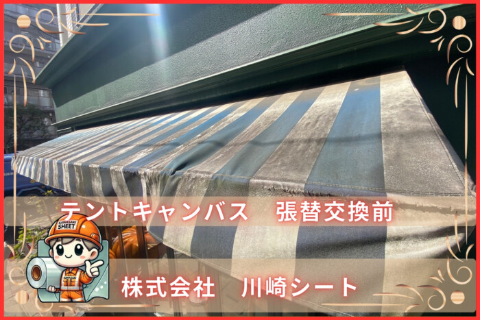 今回は約10年近く程まえにテントキャンバスの張替を行わせて頂いた店舗様から御相談を頂き新規テントキャンバスへと張替の御相談がございました。