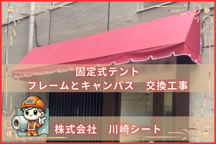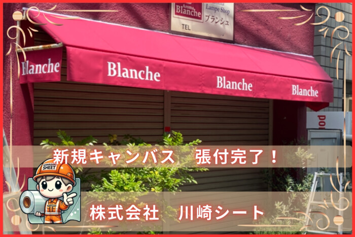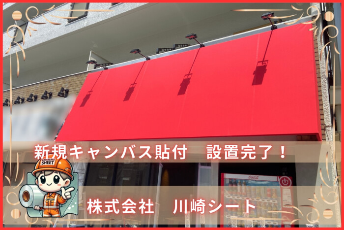 この度は東京都の店舗様にて新しいキャンバスを張り付ける工事を行わせて頂きました。伺った時には既存キャンバスはなく、フレームのみとなっている状態でした。新しいキャンバスも綺麗に張れて店舗全体のイメージも向上したと体感できました。