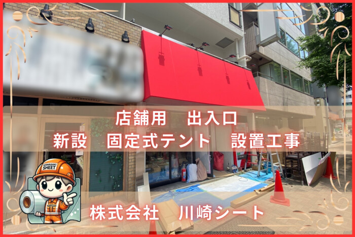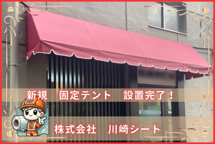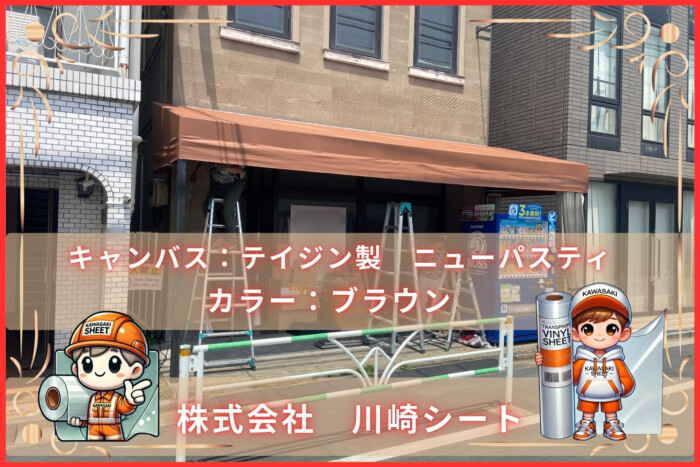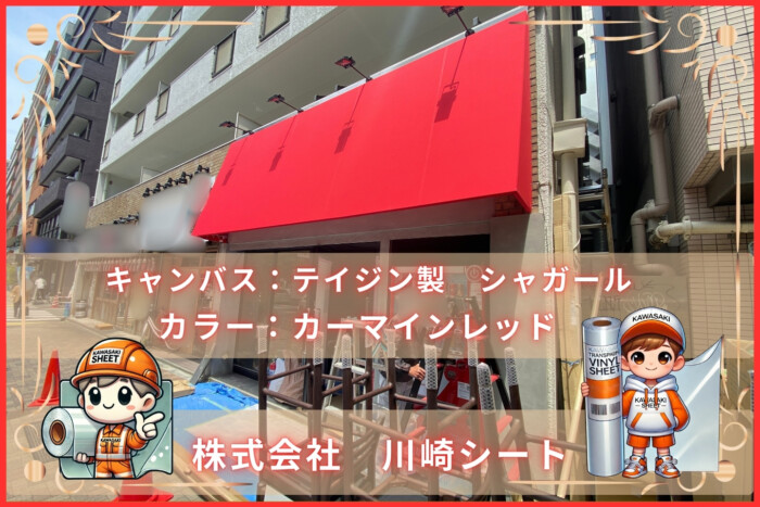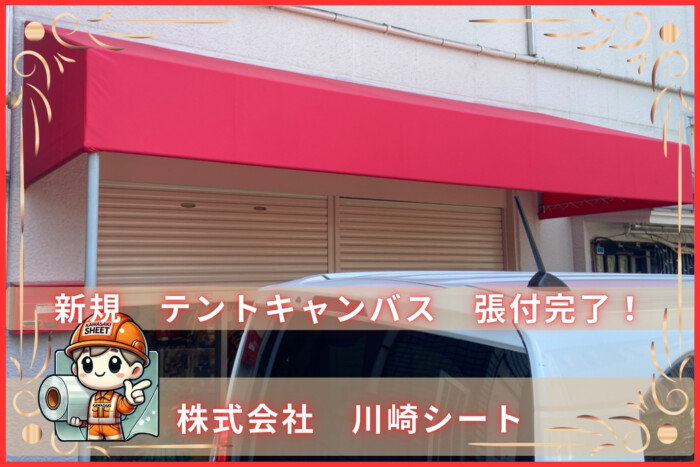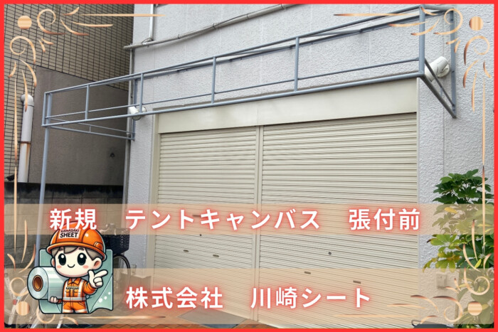 この度は新規店舗をオープンされるにあたって固定式の新設テントを設置する工事の御依頼を頂きました。少し大きめのサイズ感とコットン調から仕上がるキャンバスがとっても店舗の空気感と存在感が良いと感じる仕上がりでした。